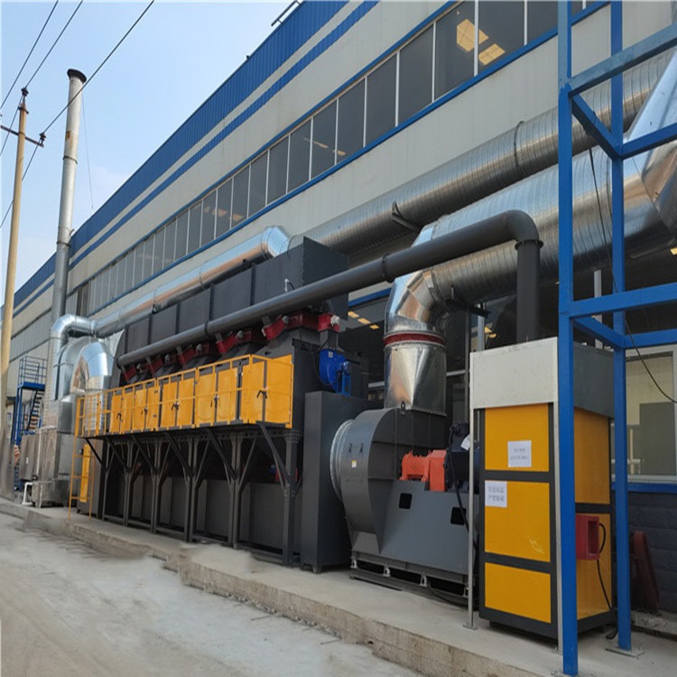 3、催化劑首先對VOC分子的吸附,提高了反應物的濃度,其次催化氧化階段降低反應的活化能,提高了反應速率,借助催化劑可使有機廢氣在較低的起燃溫度下,發生無氧燃燒,分解成CO2和H2O,釋放出大量熱量,能耗較小,某些情況下達到起燃溫度后無需外界供熱,反應溫度在250-400℃。