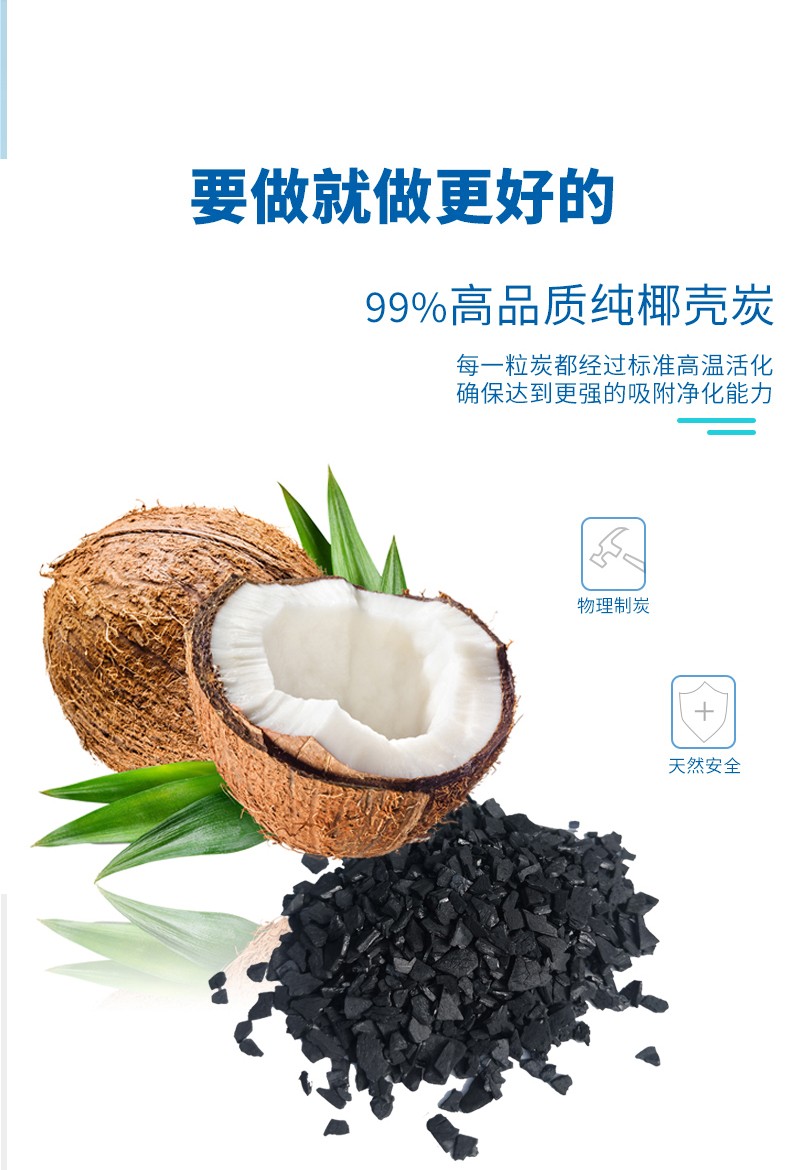2、可再生和環保:椰殼活性炭是利用椰殼等植物廢棄物制造而成,屬于可再生的天然資源。相比石煤、木質活性炭等其他原料,椰殼活性炭具有更低的環境影響和更好的可持續性。