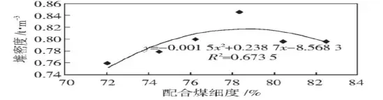 配合煤細度對配合煤堆密度、焦炭機械強度、熱強度及焦炭產量的影響, 用來指導實際生產;在一定條件下, 按照實際使用的配比, 進行不同細度下配合煤, 尋找配合煤細度與焦炭質量、產量的對應關系。