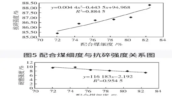 4. 配合煤細度與焦炭抗碎、耐磨強度的關系
