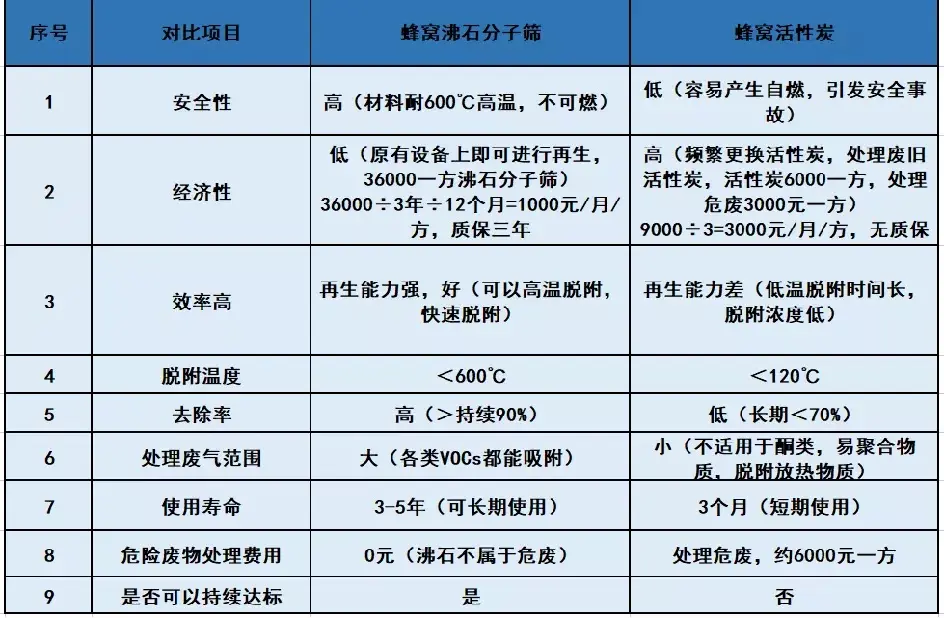 目前,活性炭是最常用的VOCs吸附劑,但存在再生困難、抗?jié)裥圆睢⒁兹嫉戎T多問題。與活性炭等常規(guī)吸附劑相比,沸石分子篩作為VOCs吸附劑其主要優(yōu)勢在于: