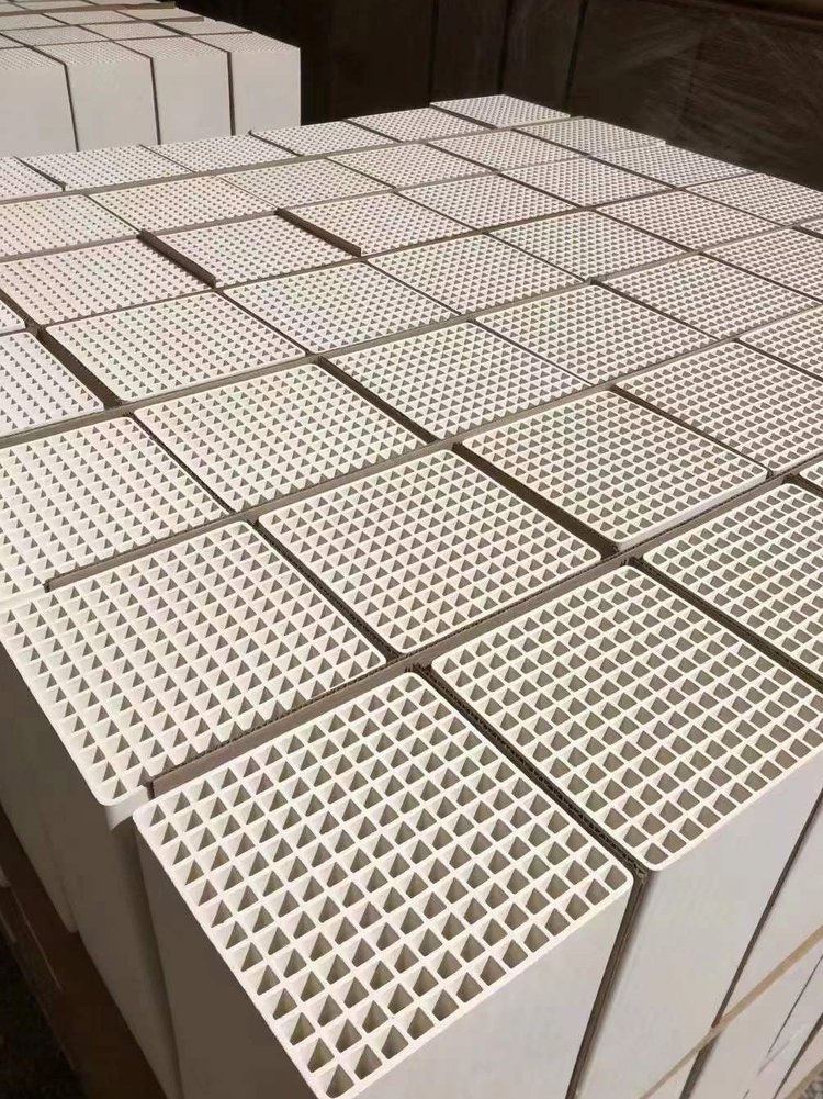 蜂窩陶瓷蓄熱體通常采用堇青石、莫來石或碳化硅等陶瓷材料制備。這些材料具有優異的熱穩定性和化學穩定性,能夠在高溫和腐蝕性環境中長期穩定工作。其中,堇青石材料的熱膨脹系數極低,使其具備出色的抗熱震性能。莫來石材料則以其高耐火度和良好的機械強度著稱。碳化硅材料則結合了高導熱性和優異的抗氧化性能。