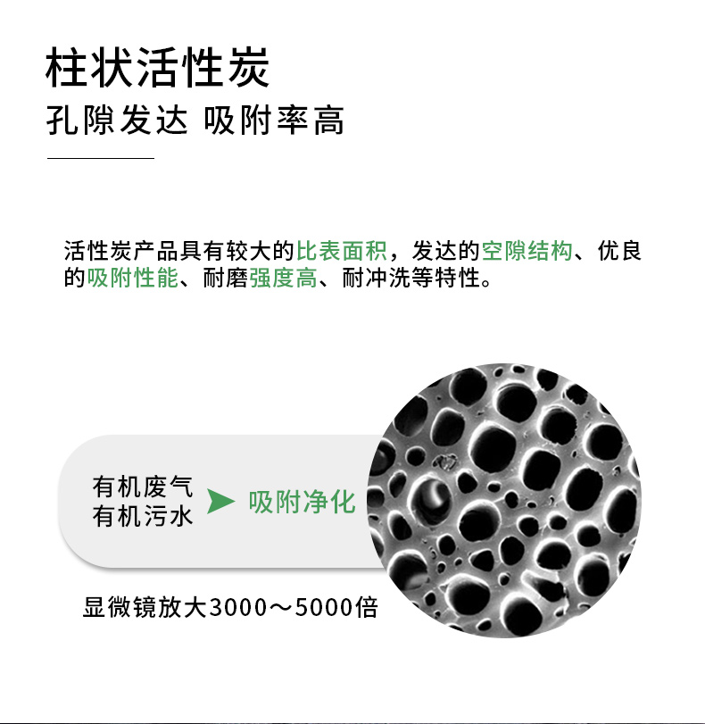 煤柱狀活性炭具備間隙構造繁榮,比面積大,吸附能力強,機器強度高,床層阻力小,化學安定性能好,易再造,經久耐用等優點。產品孔徑分布合理,達到理想吸附與脫附,從而大大提高產品的使用壽命(平均2-3年),是平常煤質炭的1.4倍。