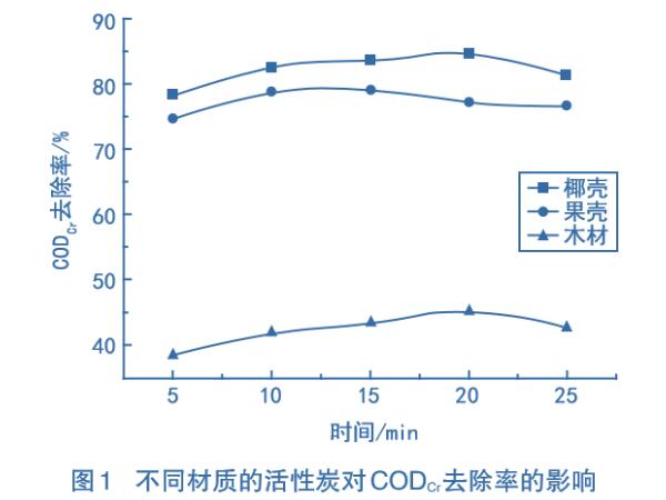 1、活性炭材質(zhì)對CODcr去除率的影響