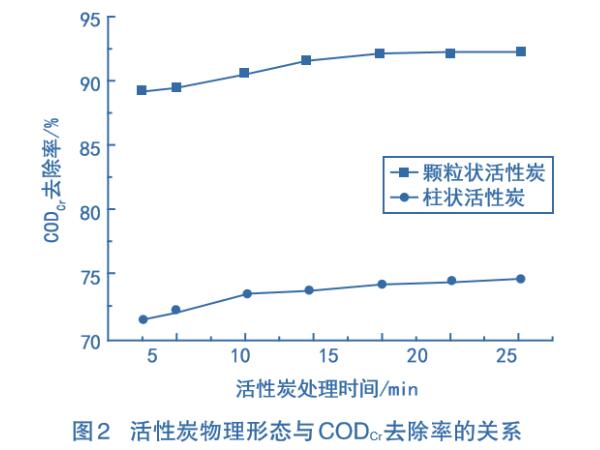 2、活性炭物理形態(tài)對CODcr去除率的影響